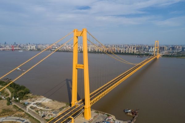 杨泗港长江大桥是武汉市境内连接汉阳区与武昌区的过江通道,位于长江水道之上,是武汉市第十座长江大桥。该桥于2014年12月3日动工兴建,2019年10月8日通车运营,通车时是世界跨度最大的双层公路悬索桥。
