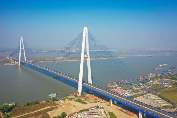 鳊鱼洲长江大桥是连接湖北省黄冈市与江西省九江市的过江通道,位于长江水道中下游河段,是安九高速铁路的控制性工程,兼顾中国“八纵八横”铁路网中京港通道和沿江通道功能。该桥于2017年10月12日动工兴建,2021年12月30日通车运营,是国内首座交叉索斜拉桥。