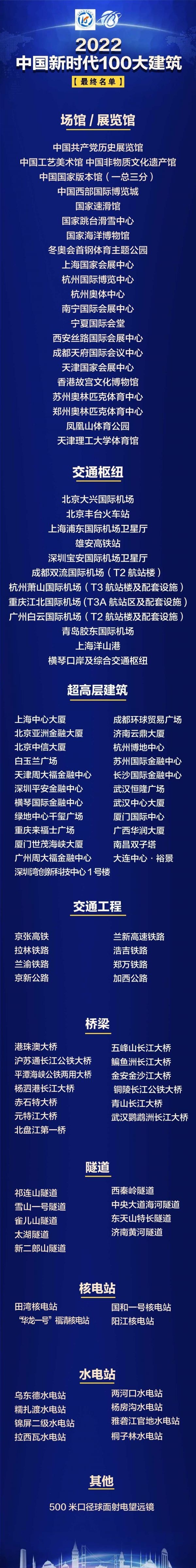 近日,中国科技新闻学会在京发布“2022中国新时代100大建筑”,上海国家会展中心、北京大兴国际机场、武汉中心大厦、杨泗港长江大桥等建筑获评“2022中国新时代100大建筑”。