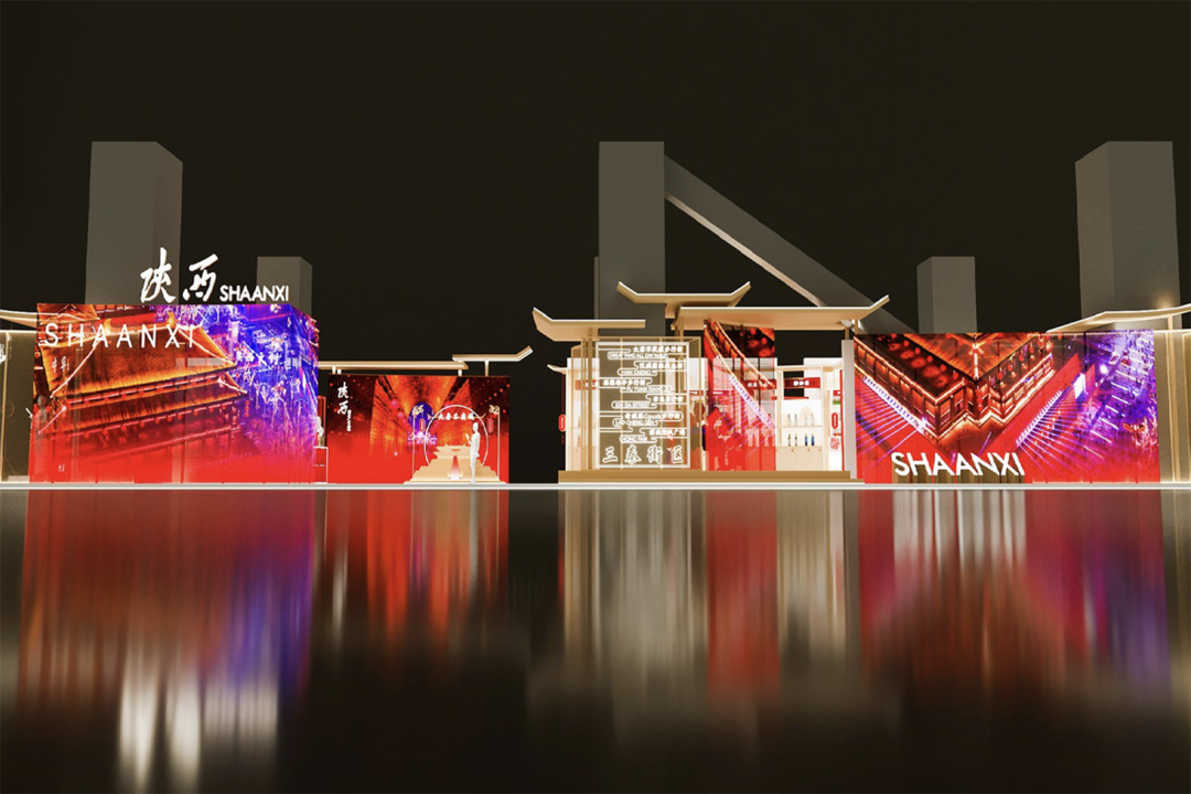 三秦文化、异彩纷呈,来陕西展区“饱眼福”。展区以“三秦腔调”为核心创意主题,衍生出“步行街”“自然风光”“地标建筑”“老字号和非遗传承”等篇章。展区外立面通过全景冰屏动态视频演绎,运用现代设计手法,生动彰显陕西地域特色和厚重历史文化。展区造型设计从秦腔传统技艺“水袖”中汲取灵感,将舞袖的灵动与步行街区建筑的挑檐斗拱相结合,内容上融入数字化展项技术,结构通透开放、简约大气,于光影间展现陕西新形象。