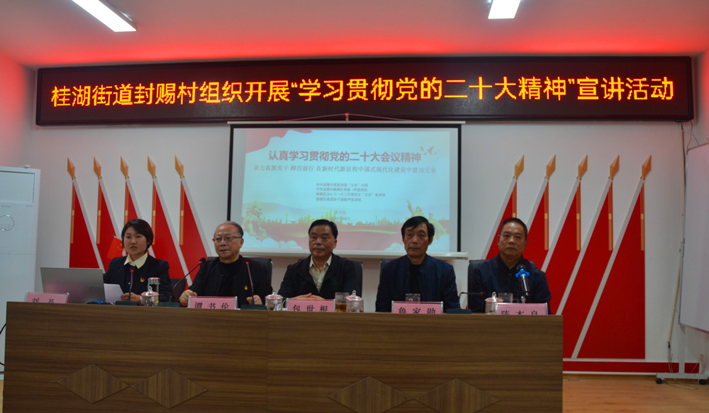 2022年10月31日,新都区桂湖街道封赐村党总支部委员会组织开展“学习贯彻党的二十大精神”宣讲会。