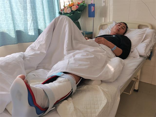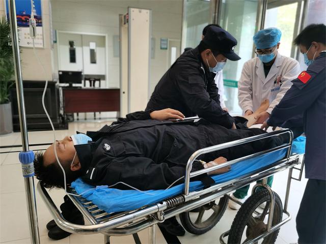 此时,120救护车赶到现场。处警民警、热心群众与医护人员迅速把小女孩和郭龙展抬到救护车上,送往周口市中医院紧急救治。经医学检查,郭龙展左腓骨骨干下段断裂、错位。