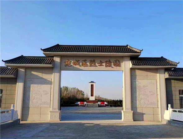 提质改造后的烈士陵园面貌焕然一新,园内庄严肃穆,松柏苍翠。宛东战役纪念碑在纪念广场上巍然屹立,新建纪念展馆主体和英烈墙已完工。陵园内集中迁葬了在宛东战役中英勇献身的135名烈士。