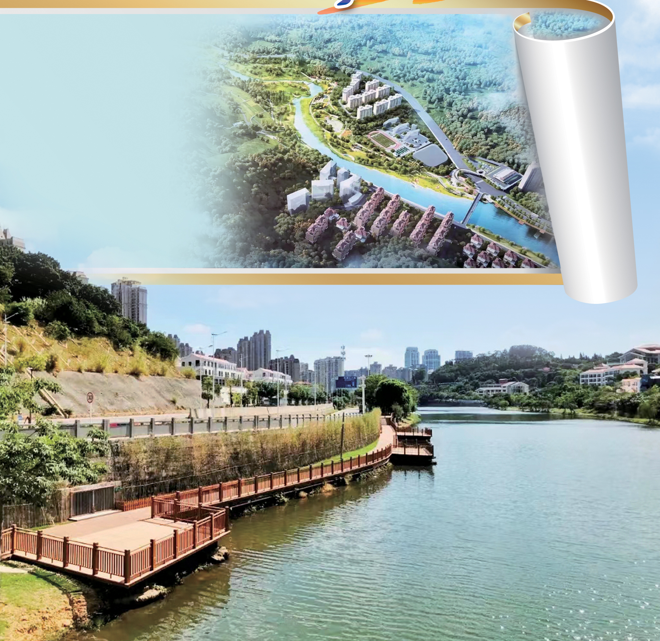 连日来,在莆田市城厢区泗华小学附近,泗华郊野公园工地内压路机、挖土机等正在有序施工,溪岸边公园道路、草地已成雏形,其中一些场地已种上草坪和绿植。而在离工地一桥之隔的另一滨溪段,木栈道和观景平台均已建设完整,粼粼波光、栈道和蓝天白云相互映衬,一起构成一幅和谐、天然的完美画卷。