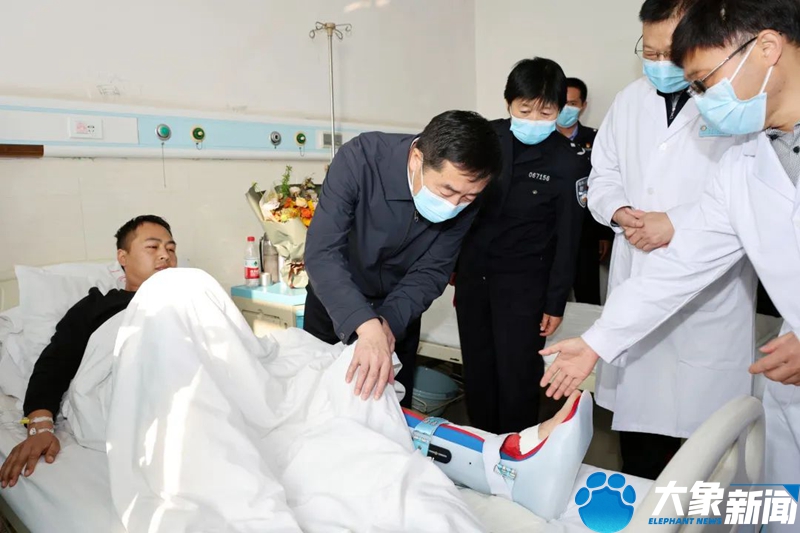 (周口市副市长、公安局长张元明到医院慰问受伤的郭龙展)
