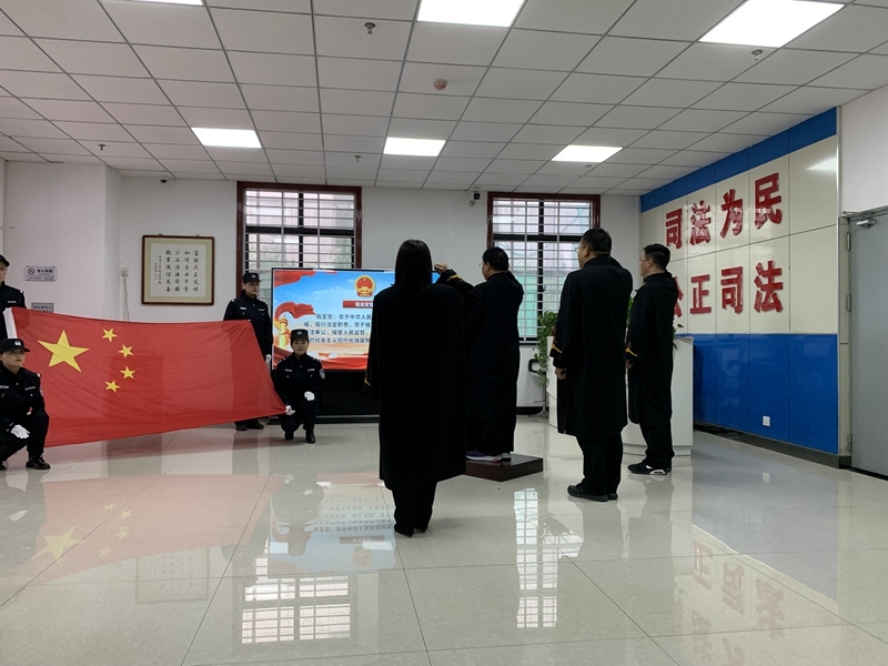 宣誓仪式上,3名新入额同志高举右拳,神情肃穆,在副院长吴振华的带领下,面向国徽和国旗,庄严宣誓。“我宣誓:忠于中华人民共和国宪法,维护宪法权威,履行法定职责,忠于祖国、忠于人民,恪尽职守、廉洁奉公,接受人民监督,为建设富强、民主、文明、和谐、美丽的社会主义现代化强国努力奋斗!”
