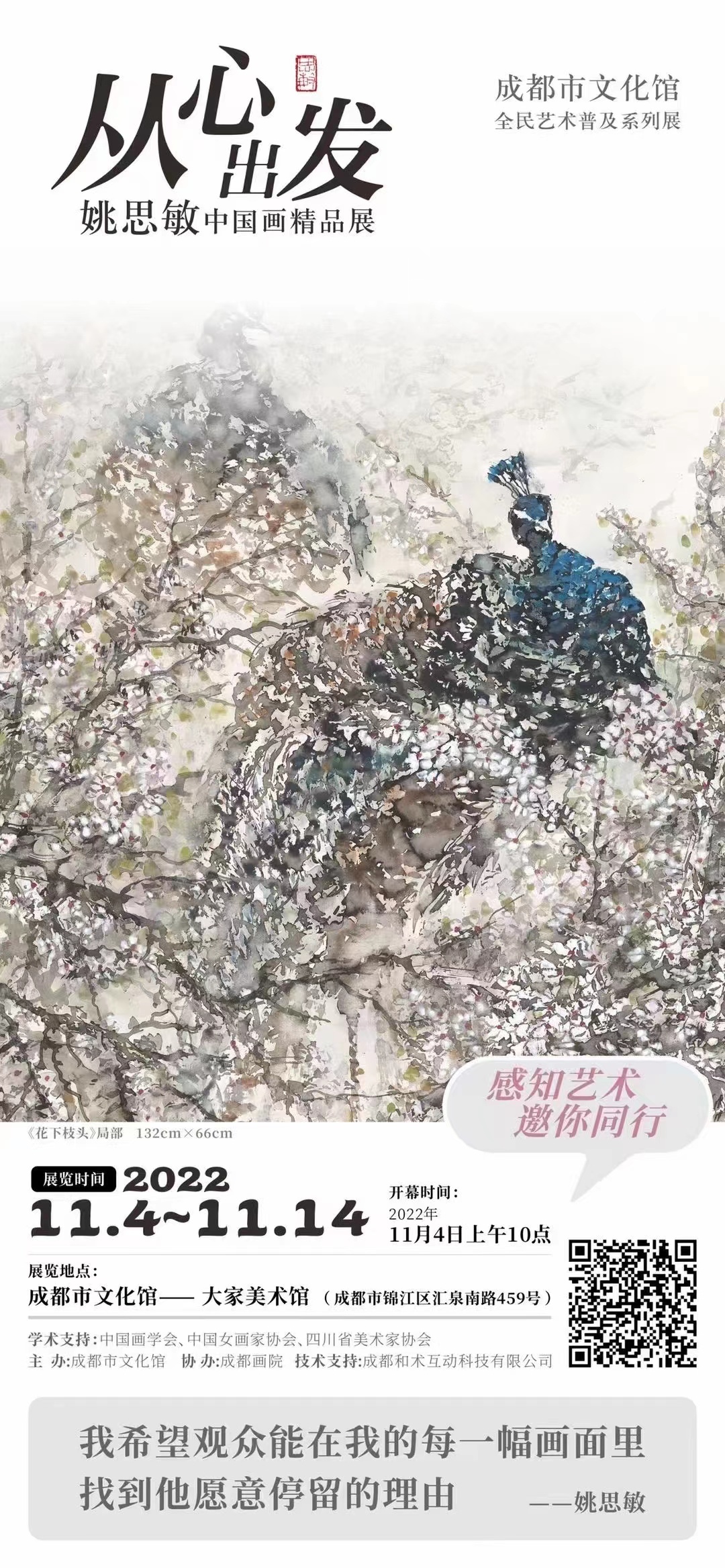 11月4日,由中国画学会、中国女画家协会和四川省美术家协会学术支持,成都市文化馆主办,成都画院协办的“姚思敏中国画精品展”在成都市文化馆“大家美术馆”正式开展。