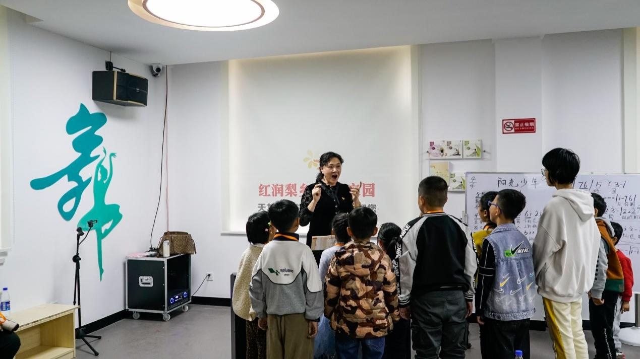歌声进社区,韵里立自信。为丰富青少年的课后生活,提升声乐学习技巧,市老干部艺术团合唱队艺术指导老师王翠红为同学们上了一堂声乐课。王老师为孩子们讲解了一些浅显易懂的乐理知识,用通俗易懂的语言教孩子们如何正确发音。“口腔既是共鸣腔,也是咬字的关键,正确运用口腔状态,可以让发声自然轻松,吐字轻松,共鸣通畅。”伴随着轻快的钢琴曲,大家利用学到的发声技巧,学唱了少儿歌曲《阳光少年》。