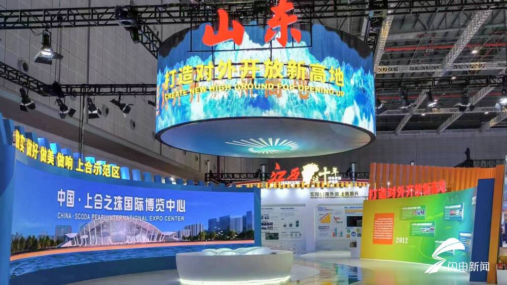 在“中国这十年”对外开放成就展中,山东设置了约360平方米的专门展区,以“打造对外开放新高地”为主题,划分“核心区+特色板块”,充分体现山东省对外开放的特点和成就,讲好山东开放故事。