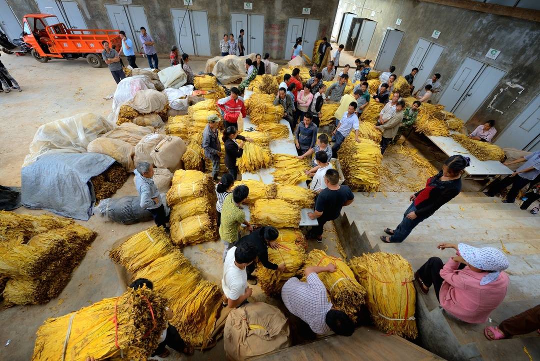 如今,会东县培育的烤烟产业已成为农业支柱产业。图为小坝乡马许村烘烤工场烟叶收购现场。