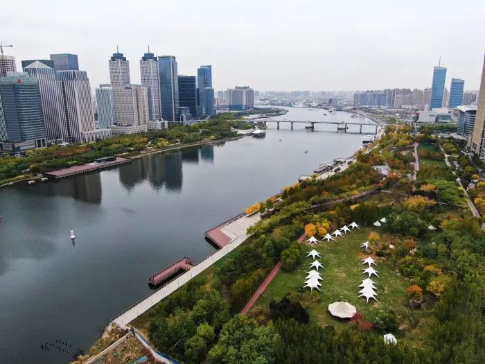 海河河畔两岸的秋景