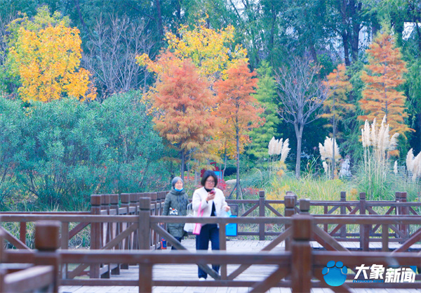 从兴洛湖公园的北门进入,一路南行可见银杏、乌桕、枫树等早已收敛清丽容姿,浅黄、深黄、深红的叶子仿佛正在进行着盛大的演出。市民徜徉其中,散步游乐,锻炼身体,享受一片宁静与和谐。