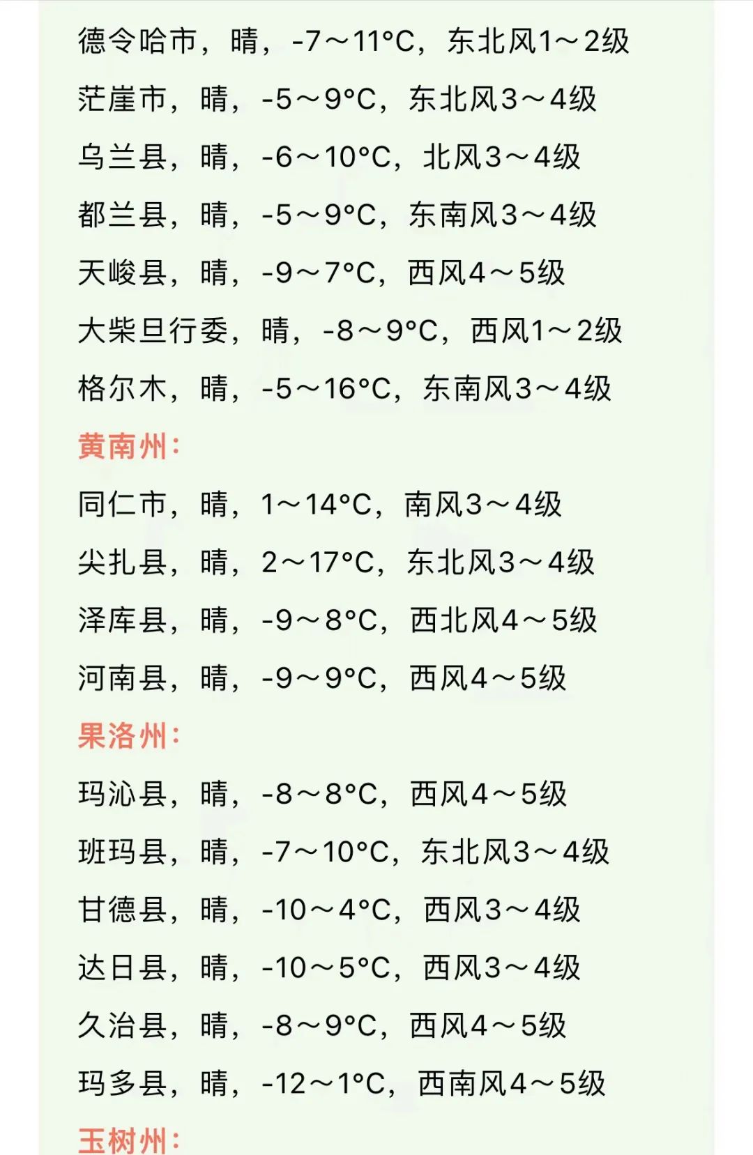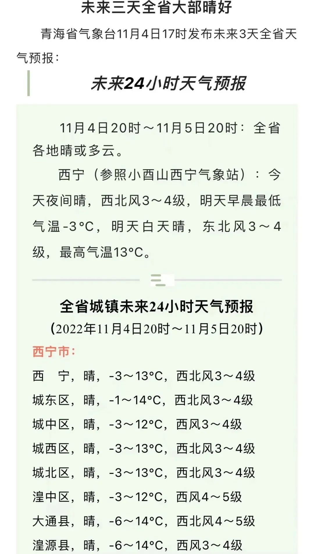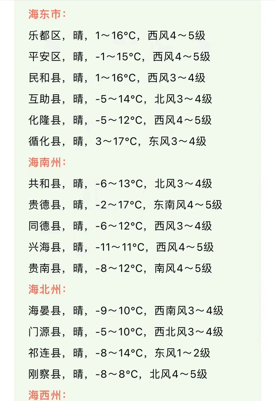 青海省未来三天天气预报