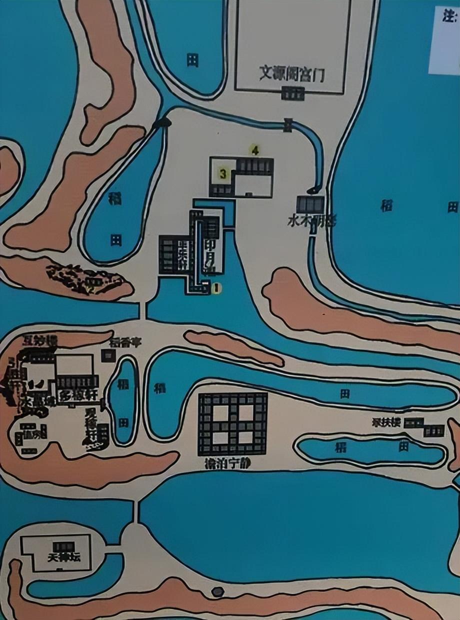 示意图 :澹泊宁静主建筑“田字房”周边曾经都是稻田