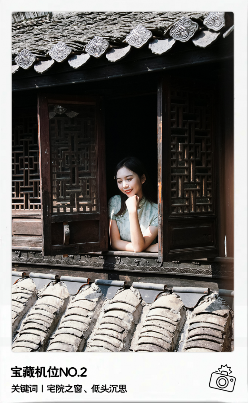 提示:江南古宅的窗总是光影的艺术。轻轻打开窗户,阳光会洒向人物面部,此时,只需要双手轻撑窗檐,慢慢垂眸,小女子的心思就都在脸上啦。