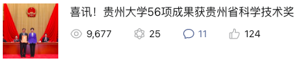 贵州大学官方微信入选“中国大学官微百强”榜单(2022年9月全国普通高校公号),排名第88位。