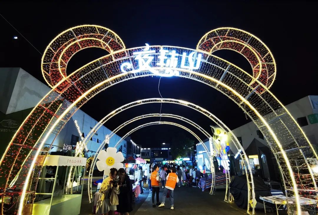 俯瞰集市,灯火长龙,这里就是“夜珠山·九集小镇”!