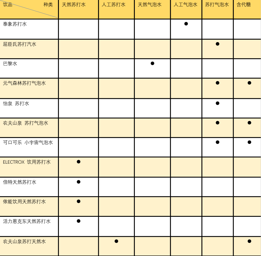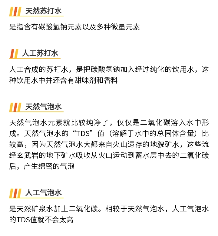 现在市场上大家常购买的苏打水和气泡水到底属于以上四种哪种类别?