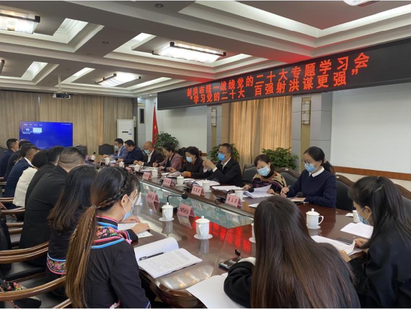 为深入学习贯彻党的二十大精神,进一步回答好“射洪之问”、办好“射洪之事”,努力建设“更高质量、更加全面、更可持续、更有韧性”的全国百强,11月3日,射洪市委统战部组织召开统一战线“学习党的二十大·百强射洪谋更强”专题学习讨论会。市委常委、统战部长刘颖出席会议并讲话,各民主党派、工商联、统战团体、非公经济、台侨界、民族宗教界代表分享了学习党的二十大精神心得体会,并从自身界别实际、岗位特点出发,对射洪高质量发展建言献策。