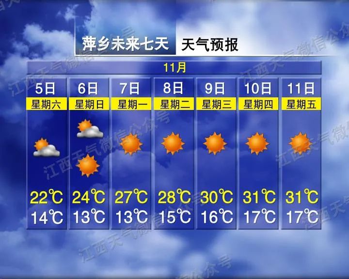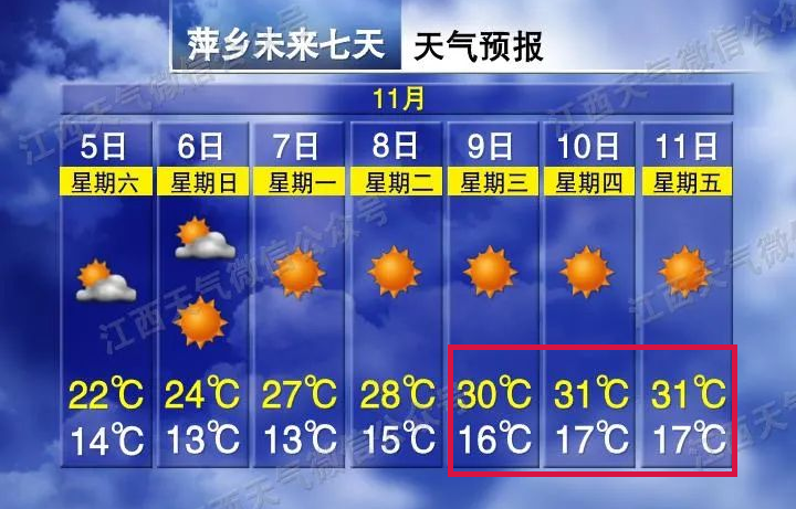 例如:9日萍乡白天最高温为30℃