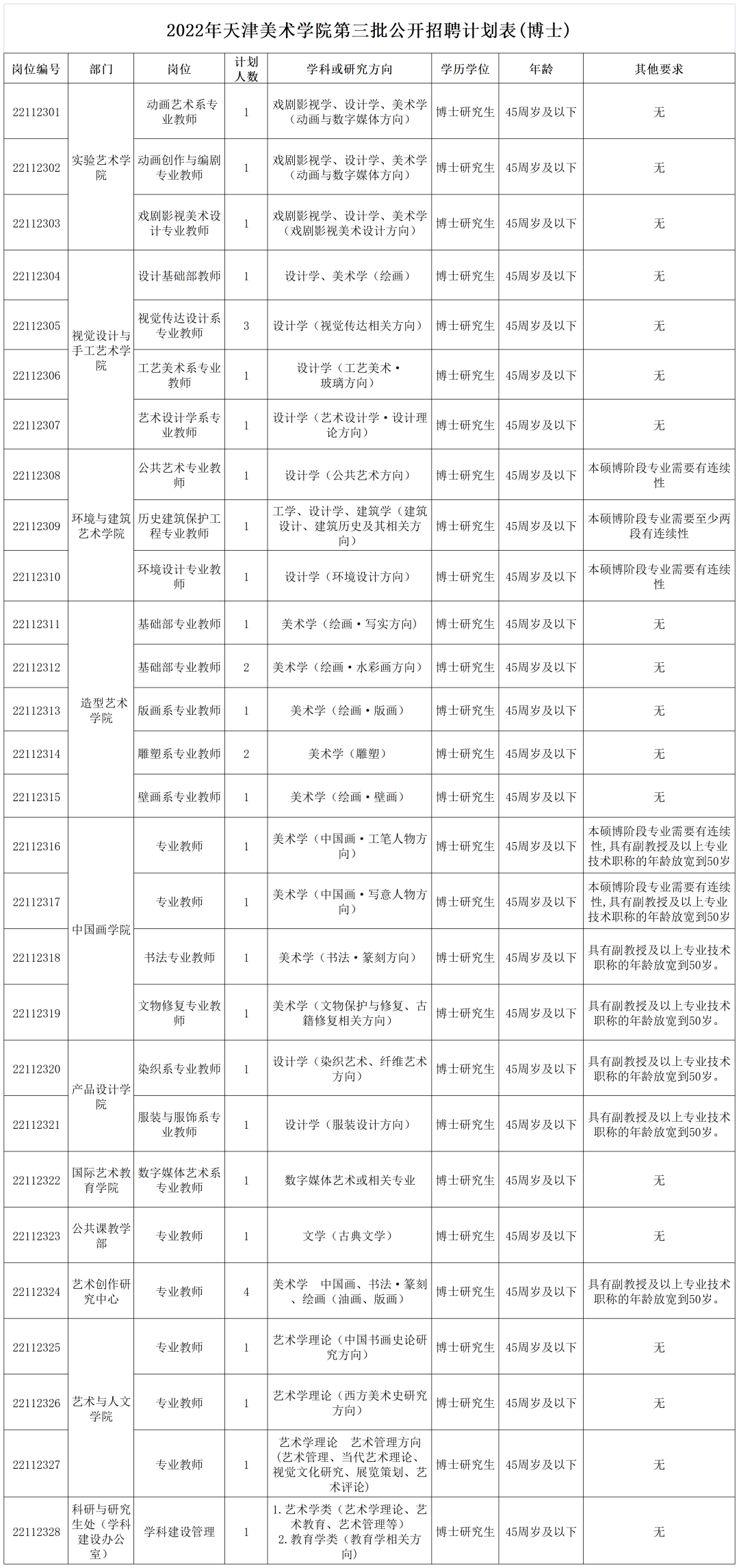 具体招聘岗位见附件《天津美术学院2022年第三批公开招聘计划表》。