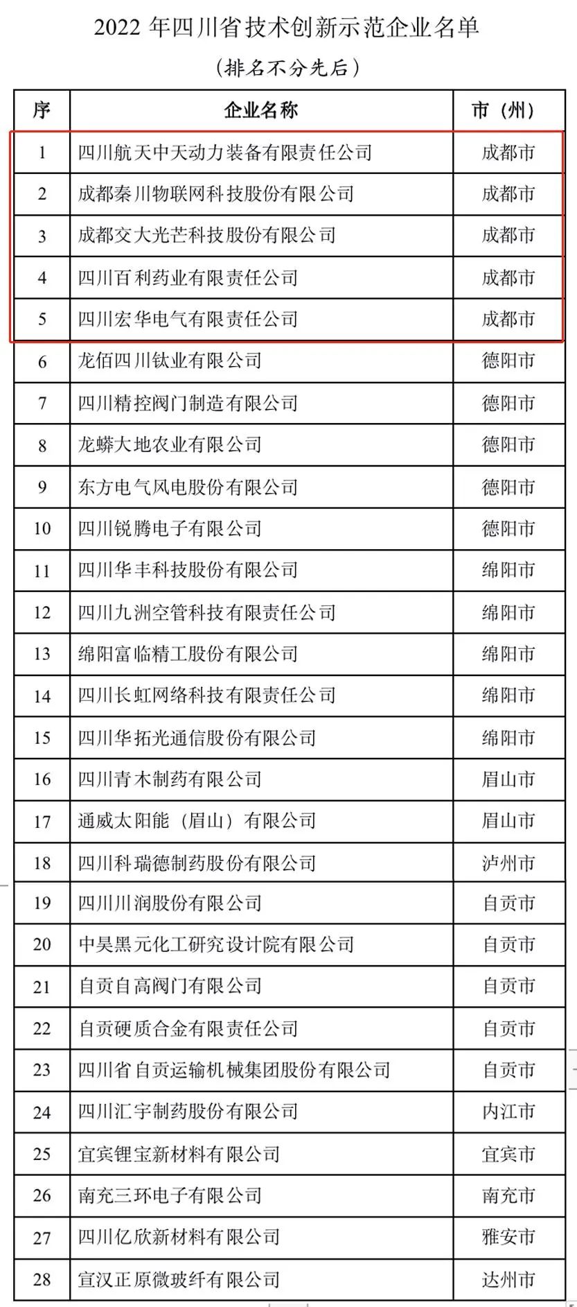 ▶2022四川技术创新示范企业名单出炉,成都5家企业入选