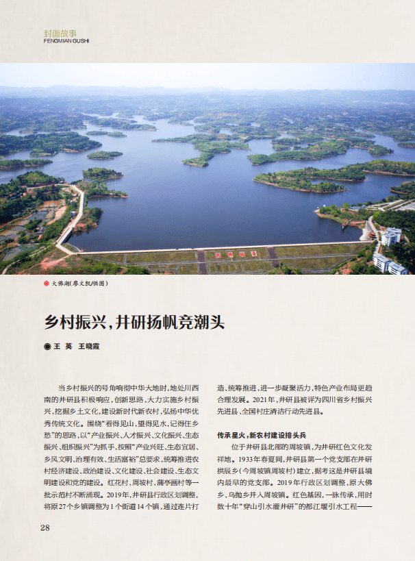 当乡村振兴的号角响彻中华大地时,地处川西南的井研县积极响应,创新思路,大力实施乡村振兴,挖掘乡土文化,建设新时代新农村,弘扬中华优秀传统文化。围绕“看得见山,望得见水,记得住乡愁”的思路,以“产业振兴、人才振兴、文化振兴、生态振兴、组织振兴”为抓手,按照“产业兴旺、生态宜居、乡风文明、治理有效、生活富裕”总要求,统筹推进农村经济建设、政治建设、文化建设、社会建设、生态文明建设和党的建设。红花村、周坡村、蒲亭画村等一批示范村不断涌现。 2019年,井研县行政区划调整,将原 27个乡镇调整为 1个街道 14个镇,通过连片打造、统筹推进,进一步凝聚活力,特色产业布局更趋合理发展。 2021年,井研县被评为四川省乡村振兴先进县、全国村庄清洁行动先进县。