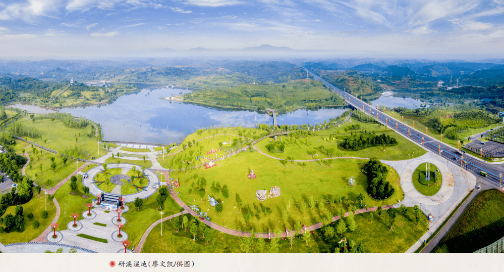 2017年 5月,茫溪河生态补水项目——井研县研溪湿地公园正式动工建设,由北到南跨越研城镇宋高山村、建新村和千佛镇共裕村、瓦子坝村,占地面积 2640亩。作为茫溪河综合治理工程的重要组成部分,研溪湿地公园如今是乐山最大的城市湿地公园, 2018年 2月春节起,正式对外开放部分区域。 2019年 5月至今,在研溪湿地公园播放音乐喷泉 182场,累计观众 54.6万人次;举办“研为百姓大舞台”特色文艺汇演 30场,累计观众 6万人次。 2020年 9月至今,开放廖平经学堂,传承国学经典,累计参观人数 1.5万人次。 2022年 3月,研溪湿地公园被认定为省级生态旅游示范区。