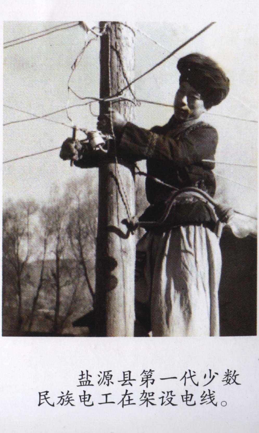盐源县第一代少数民族电工在架设电线 盐源县委宣传部供图,李荣友摄
