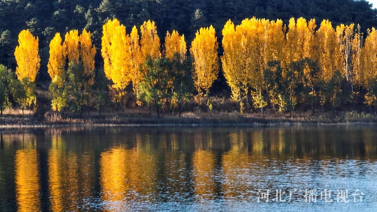 晚秋的早晨,在河北省遵化市,晨光中的湖水、树木、村庄、远山,交相辉映,如诗如画,令人陶醉。