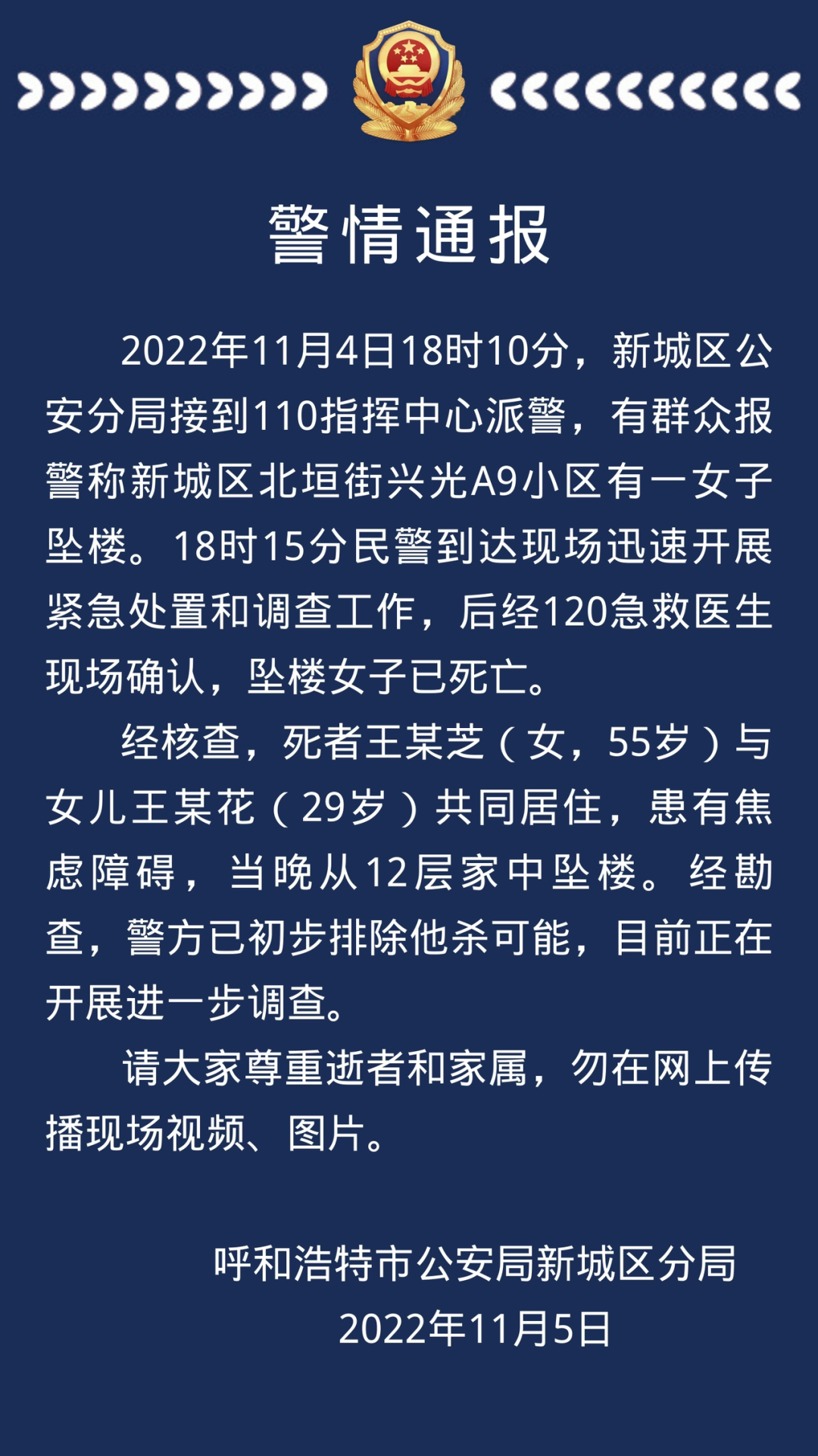 内蒙古呼和浩特市公安局新城区分局11月5日通过其官方微信公众号“平安新城V”发布《警情通报》: