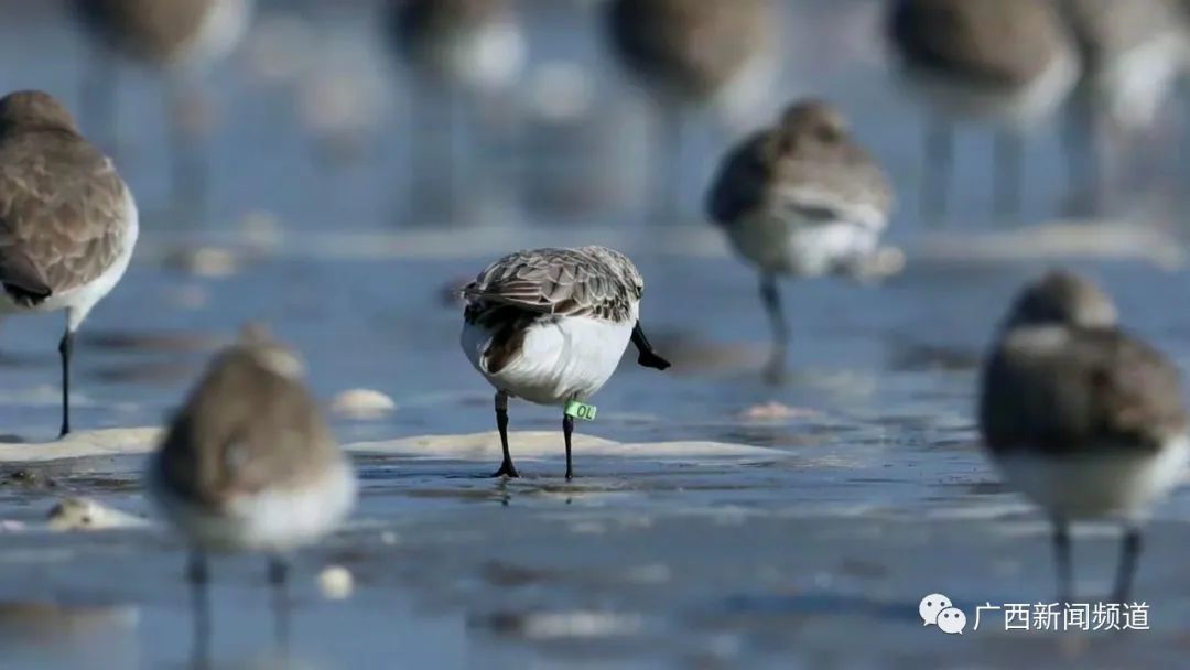 进入秋季以来,各路候鸟大军陆续抵达防城港,其中就有世界濒危鸟种勺嘴鹬的身影。近日(10月30日),一只脚上带着“0L”标志的勺嘴鹬在防城港海滩首次被拍摄到,这是它出生后的首次迁飞,也是除了“8V”之外在防城港发现的第二只带着旗标的勺嘴鹬。