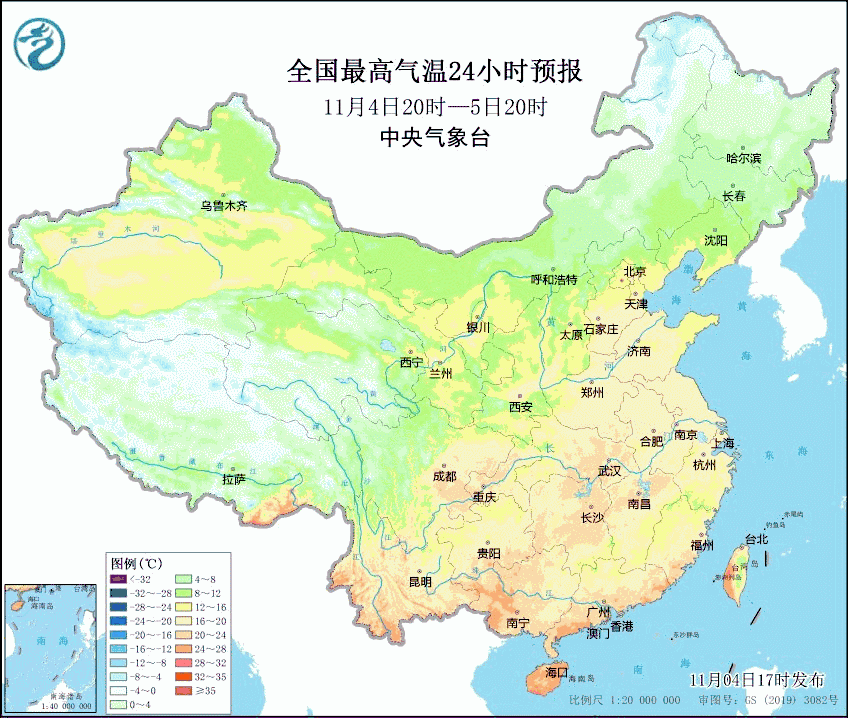 4日白天,冷空气影响仍在继续,黄河以南地区气温下滑,长江中下游一带的最高气温大多降至20℃以下。而华北、东北一带则开启了升温模式。
