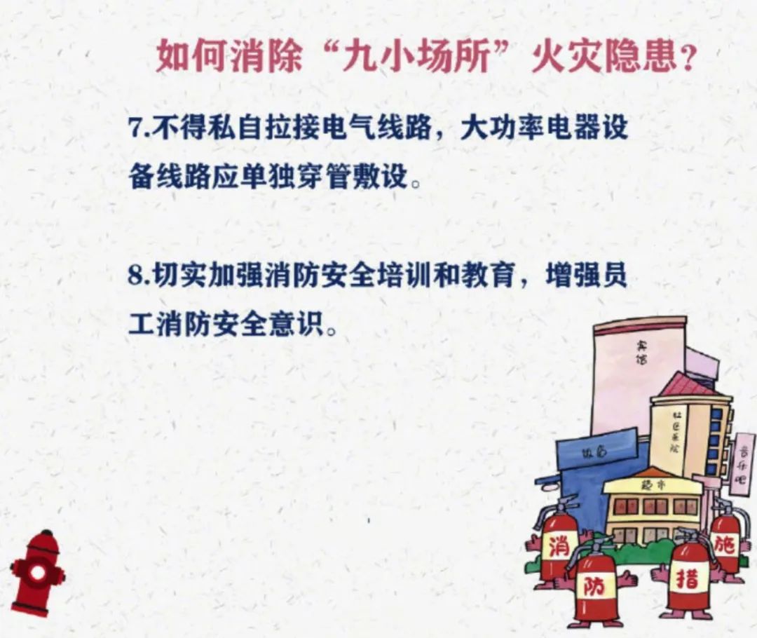 “九小场所”的出现,为居民生活带来巨大便利,但受经营模式、经营实力的限制,通常在硬件设施上投入不足,容易出现可燃物多、火源管理差、“三合一”等问题,一旦出现火情,容易出现小火快速蔓延成势、人员疏散困难等情况。