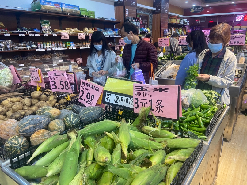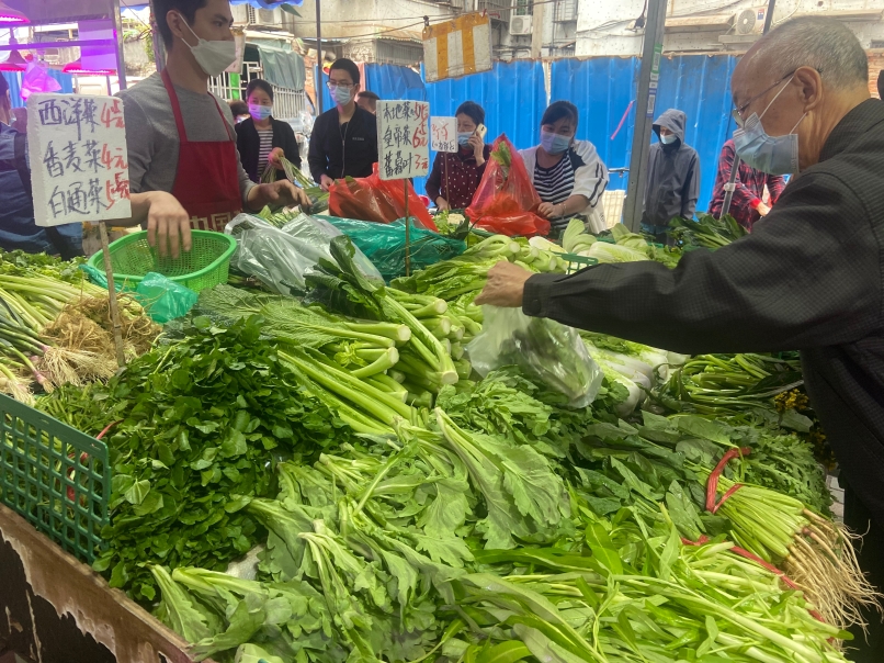 菜心3.5元/斤、番薯叶3元/斤、玉米3元1条......11月5日,在海珠区赤岗街道,记者走访多家社区生鲜超市及赤岗菜市场,现场民生物资供需有序、量足价稳。在赤岗菜市场,市民在市场入口处扫码测温后入场。市场内,当季蔬菜、水果、羊肉、河鲜、海鲜等各式菜品应有尽有,并依然保持“平靓正”。有市民告诉记者,今天来菜市场买菜的人比以前多了一点,自己仍是正常采买,物价方面没有感受到太大的波动。