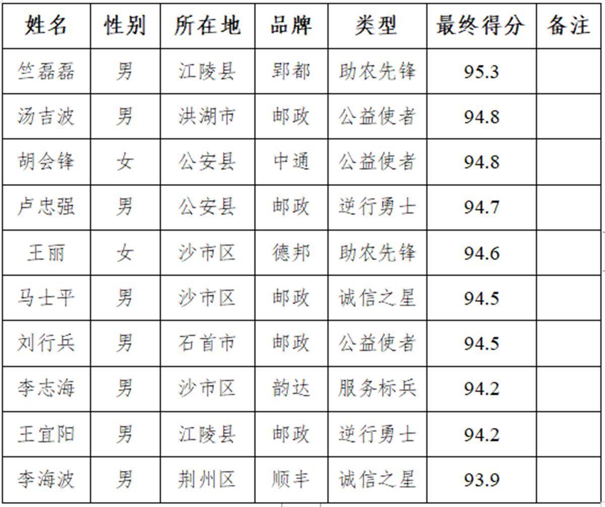 2022年度荆州市“最美快递员”评选结果正在公示。