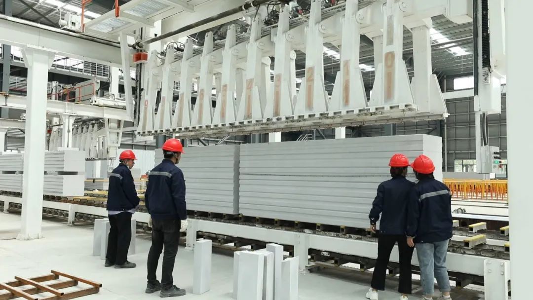 不止新兴产业,围绕绿色链条的搭建,山东传统产业也在寻找新的发展模式。在兰陵县装备制造产业园,山东鑫耀建材科技有限公司的工人们正在加紧生产一批AAC新型墙体材料,这种新材料以园区内其他企业的铁矿尾泥和脱硫石膏等废料为原料,并利用园区产生的工业废蒸汽进行高温高压蒸养而成。山东鑫耀建材科技有限公司常务副总经理王涛:“经由原材料选型、静养、成品切割、成品运输等工艺,此工艺可以把废水废渣废气同步利用,达到国内零排放的要求。”