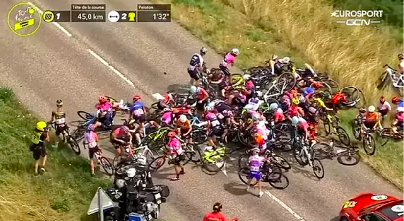 在拥挤又高速的骑行中,常常是一摔一大片丨GCN