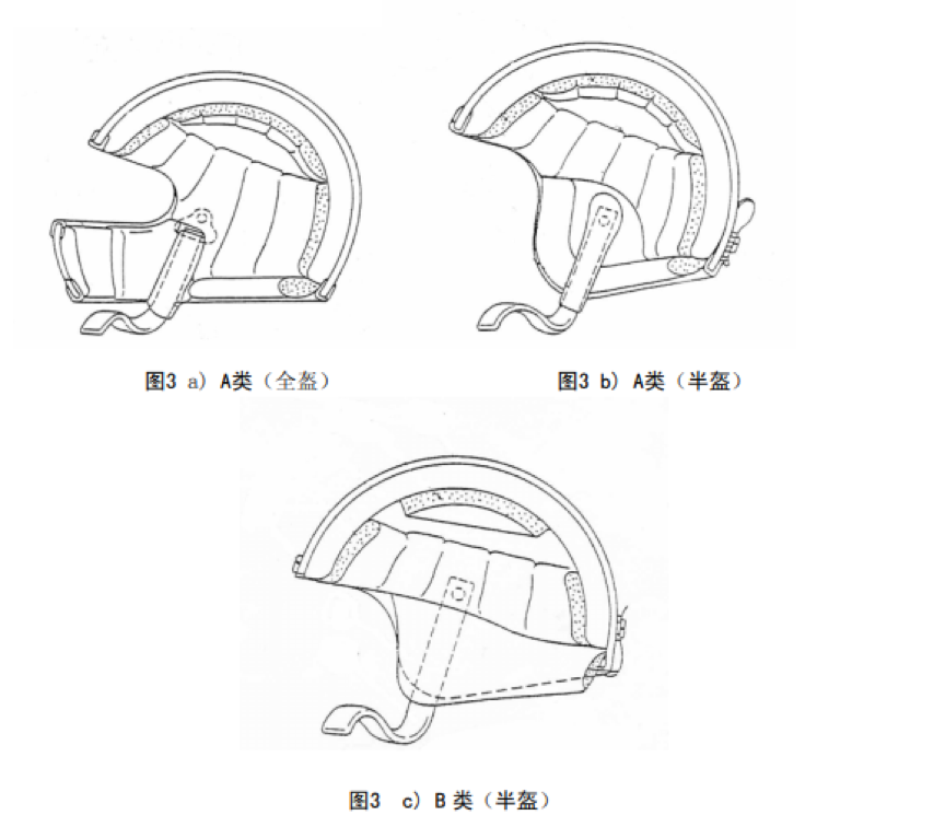 根据相关标准,摩托车头盔样式分为3类:全盔、A类半盔、B类半盔[3]。