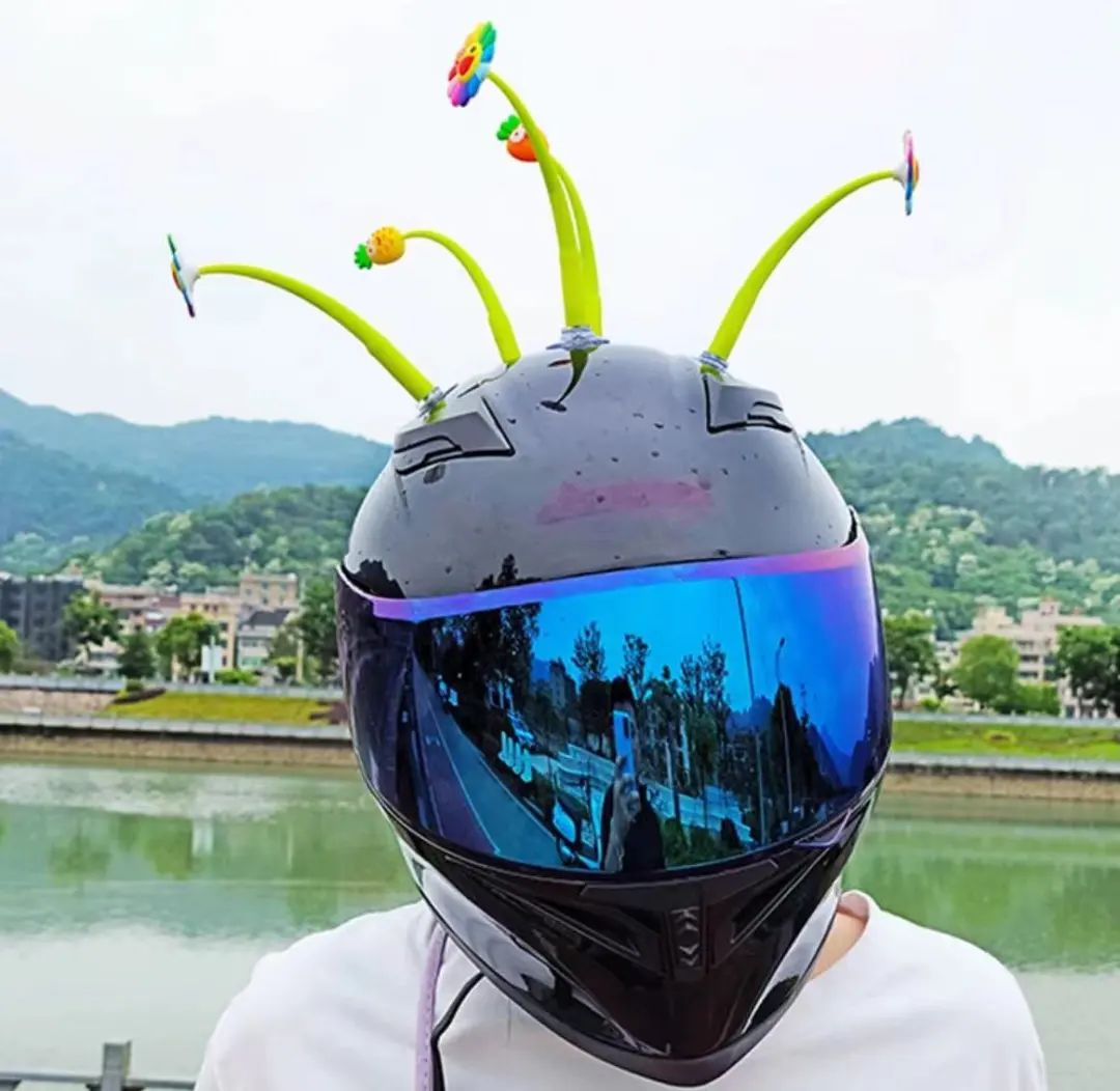 一些电瓶车骑手会在头盔上做装饰,比如动物耳朵、蝴蝶结、竹蜻蜓等。虽然头盔一下子变得很可爱,也无妨头盔的保护作用,但这样的装饰会分散路人、司机的注意力,也是有安全隐患的。