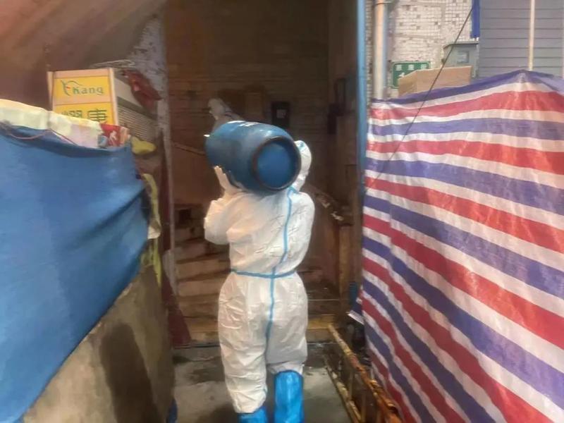 在临时管控区域,部分区域实施“足不出户”的防控政策。在这些区域里,身穿“大白”防护服的攻坚队成员成为连接住户和外界的桥梁。据了解,这些住户的生活物资都由攻坚队逐家逐户送至家门。惠康街某户居民面临“缺气”难题,攻坚队队员小张为其送液化石油气上门,肩扛铁罐一口气爬上六楼。