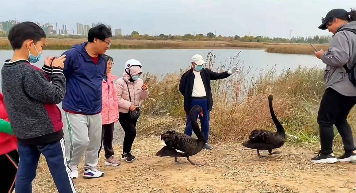 齐鲁网·闪电新闻11月5日讯 “听说广利河来了一对黑天鹅,我们一大早就赶过来‘一睹芳容’了,果然是环境好不好,鸟儿最知道!”在东营市广利河庐山路附近,两只黑天鹅的到来让这里热闹起来,不少市民前来打卡围观。