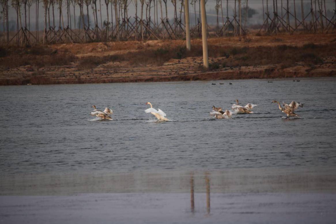 在东八路湿地,胜利四中的杜军老师带领学生们开展鸟类观察活动,他们现场拍摄到26只西伯利亚飞来越冬的疣鼻天鹅种群,美丽的天鹅时而水中嬉戏,时而翩翩起舞,引来学生们的阵阵欢呼。