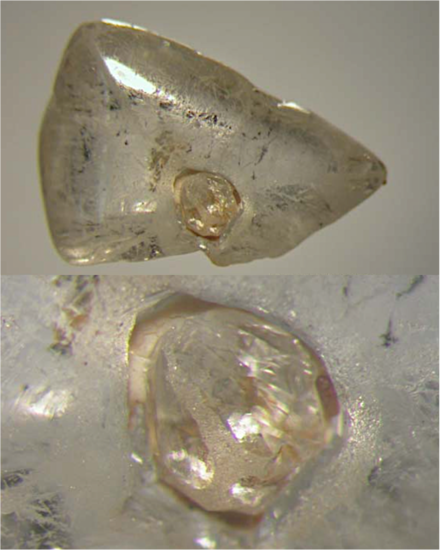 有趣的是,即使是钻石本身,也可能成为自己的“包裹体”:一颗大钻石包裹着一颗小钻石,呈现出奇特的“双钻”(Double diamonds)。2019年,第一颗“双钻”在俄罗斯雅库特(Yakutia, Russia)被发现;2021年,第二颗“双钻”在西澳大利亚(Western Australia)的埃伦代尔钻石场(Ellendale Diamond Field)被开采出来。