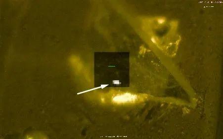 钻石中的水散射出的X射线(箭头指向的白色部分)表明,在地球深部有水的存在 | 图片来源:参考文献