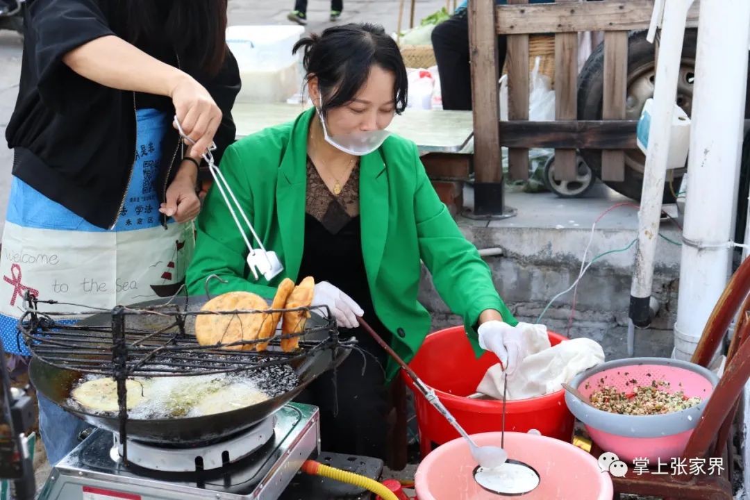 覃顺业炸的油粑粑尤其抢手,咬上一口,那酥脆便在唇齿间发出滋滋声响。继而轻淡的豆香、香干的Q弹、韭菜的浓郁、红薯的粉甜和辣椒的劲爽,迅速击中味蕾,怎一个“香”字了得。