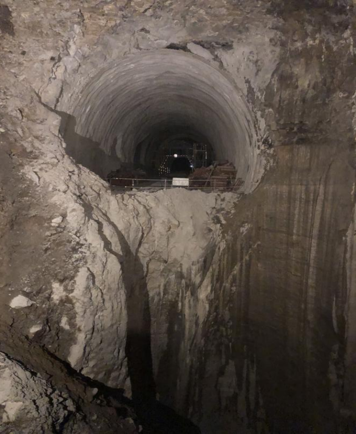 2019年1月,老鼻山隧道施工中揭示了一座向下最大深度近40米,向上最大高度约32米,横向最宽约38米的大型溶洞。图源:“中国铁建”微信公众号