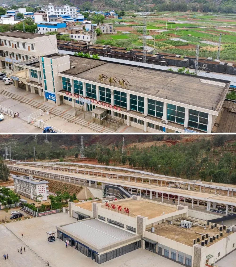 拼版照片:上图为成昆铁路经过的元谋站,于2019年12月30日零时起正式停止办理客运业务,如今承担货运功能;下图为新成昆铁路经过的元谋西站,元谋西站于2019年12月30日开始办理客运业务。新华社记者 胡超 摄