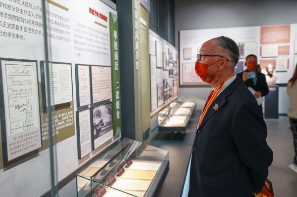 仪式现场,殷鸿福院士细细观展。他表示,自己是建校第一批学生,1952年自己报考了刚刚筹建的北京地质学院,选择了地质矿产与勘探系,当时他的成绩已超过清华大学录取线。“今天获得‘在校70年’荣誉章,看到新落成的校史馆,我为地大不断成长感到高兴,校史馆留下了地大人走过的足迹,非常宝贵,也给新一代地大人留下纪念,长江后浪推前浪,希望一代更比一代强!”殷鸿福院士说。