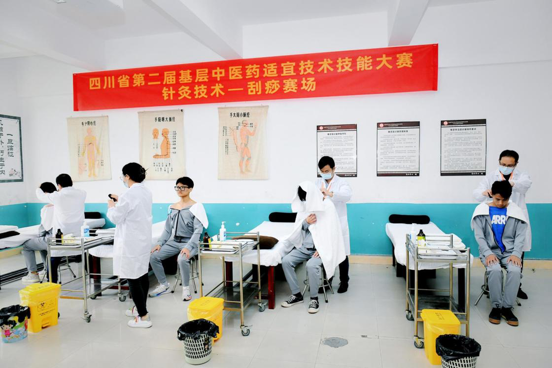本次大赛分针灸技术(包含毫针刺法、艾炷灸法、刮痧、罐法)、推拿技术两个项目。来自四川20个地市州的80名选手按照抽签顺序依次进行比赛。大赛现场,参赛选手们沉着应赛,显示出了良好竞技风貌和过硬专业技能功底。